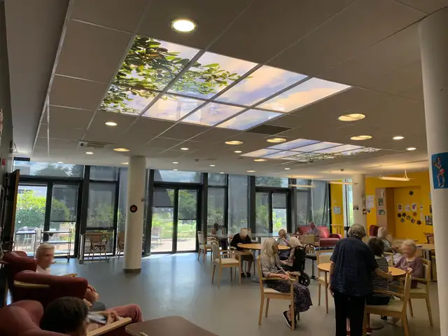 Nos solutions ont permis d’embellir la pièce, dorénavant la salle de vie de la résidence est mise en lumière et permet aux familles, aux résidents et au personnel de passer de meilleur moment. Les résidents peuvent désormais profiter de vues apaisantes sur le ciel, créant ainsi une connexion avec le monde extérieur même depuis l’intérieur de l’établissement.
